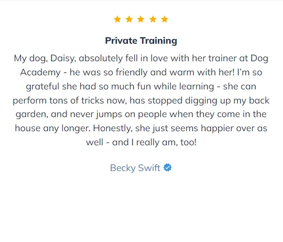 We only use positive, reward-based methods in all of our training programs. These work with your dog’s psychology, are highly effective, and help your dog feel happier, less stressed, and more closely bonded with you.